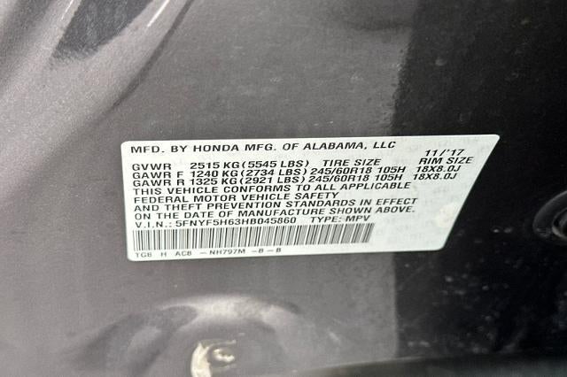 CARFAX One-Owner. Clean CARFAX. Modern Steel Metallic 2017 Honda Pilot EX-L w/Honda Sensing FWD 6-Speed Automatic 3.5L V6 24V SOHC i-VTEC CARFAX ONE OWNER, NON-SMOKER, Leather Seats, Backup Camera, Bluetooth®, Moonroof, Alloy Wheels, Aluminum Wheels, Climate Package, Heat Package, Light Package, Power Mirror Package, Power Package, Remote Start, Sunroof/Moonroof, Pilot EX-L w/Honda Sensing, 4D Sport Utility, 3.5L V6 24V SOHC i-VTEC, 6-Speed Automatic, FWD, Modern Steel Metallic, Gray w/Leather-Trimmed Seats, 18" Alloy Wheels, 3rd row seats: split-bench, 4-Wheel Disc Brakes, 4.25 Axle Ratio, 7 Speakers, ABS brakes, Air Conditioning, Alloy wheels, AM/FM radio: SiriusXM, Apple CarPlay/Android Auto, Auto-dimming Rear-View mirror, Automatic temperature control, Brake assist, Bumpers: body-color, Compass, Delay-off headlights, Driver door bin, Driver vanity mirror, Dual front impact airbags, Dual front side impact airbags, Electronic Stability Control, Emergency communication system: HondaLink Assist, Exterior Parking Camera Rear, Four wheel independent suspension, Front Bucket Seats, Front Center Armrest, Front dual zone A/C, Front fog lights, Front reading lights, Fully automatic headlights, Garage door transmitter: HomeLink, Heated Front Bucket Seats, Heated front seats, Illuminated entry, Leather Shift Knob, Leather-Trimmed Seats, Low tire pressure warning, Occupant sensing airbag, Outside temperature display, Overhead airbag, Overhead console, Panic alarm, Passenger door bin, Passenger vanity mirror, Power door mirrors, Power driver seat, Power Liftgate, Power moonroof, Power passenger seat, Power steering, Power windows, Radio data system, Radio: AM/FM Audio System, Rear air conditioning, Rear reading lights, Rear seat center armrest, Rear window defroster, Rear window wiper, Remote keyless entry, Security system, SiriusXM Radio, Speed control, Speed-sensing steering, Speed-Sensitive Wipers, Split folding rear seat, Spoiler, Steering wheel mounted audio controls, Tachometer, Telescoping steering wheel, Tilt steering wheel, Traction control, Trip computer, Variably intermittent wipers.