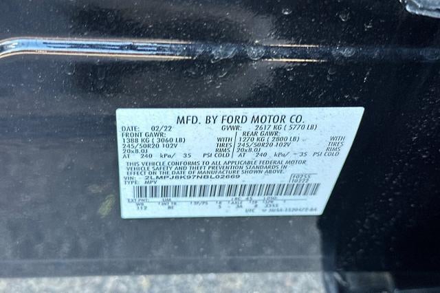 CARFAX One-Owner. Clean CARFAX. Infinite Black Metallic Clearcoat 2022 Lincoln Nautilus Reserve AWD 8-Speed Automatic 2.0L Turbocharged CARFAX ONE OWNER, NON-SMOKER, Backup Camera, Bluetooth®, Moonroof, Alloy Wheels, Climate Package, Heat Package, Light Package, Power Mirror Package, Power Package, Sunroof/Moonroof, Nautilus Reserve, 4D Sport Utility, 2.0L Turbocharged, 8-Speed Automatic, AWD, Infinite Black Metallic Clearcoat, Ebony/Roast w/Prem Lthr-Trimmed Heated/Ventilated Captain Seats, 3.80 Axle Ratio, 4-Wheel Disc Brakes, ABS brakes, Air Conditioning, Alloy wheels, Auto High-beam Headlights, Auto tilt-away steering wheel, Auto-dimming door mirrors, Auto-dimming Rear-View mirror, Automatic temperature control, Brake assist, Bumpers: body-color, Compass, Delay-off headlights, Driver door bin, Driver vanity mirror, Dual front impact airbags, Dual front side impact airbags, Electronic Stability Control, Emergency communication system: 911 Assist, Equipment Group 200A, Four wheel independent suspension, Front Bucket Seats, Front Center Armrest w/Storage, Front dual zone A/C, Front reading lights, Fully automatic headlights, Garage door transmitter: HomeLink, Heated door mirrors, Heated front seats, Heated rear seats, Heated steering wheel, Illuminated entry, Knee airbag, Leather steering wheel, Low tire pressure warning, Memory seat, Navigation System, Occupant sensing airbag, Outside temperature display, Overhead airbag, Overhead console, Panic alarm, Passenger door bin, Passenger vanity mirror, Power door mirrors, Power driver seat, Power Liftgate, Power moonroof: Panoramic Vista Roof, Power passenger seat, Power steering, Power windows, Prem Lthr-Trimmed Heated/Ventilated Captain Seats, Rain sensing wipers, Rear reading lights, Rear seat center armrest, Rear window defroster, Rear window wiper, Remote keyless entry, Security system, Speed control, Speed-sensing steering, Speed-Sensitive Wipers, Split folding rear seat, Spoiler, Steering wheel memory, Steering wheel mounted A/C controls, Steering wheel mounted audio controls, SYNC 4 w/Enhanced Voice Recognition, Tachometer, Telescoping steering wheel, Tilt steering wheel, Traction control, Trip computer, Turn signal indicator mirrors, Variably intermittent wipers, Ventilated front seats, Wheels: 18" Premium Painted Bright Machined Alum, Wheels: 20" Prem Painted Bright Machined Aluminum.