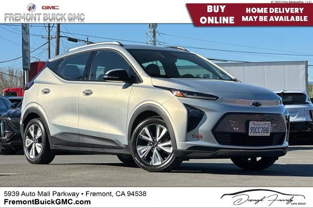 CARFAX One-Owner. Clean CARFAX. Silver Flare Metallic 2023 Chevrolet Bolt EUV LT FWD 1-Speed Automatic Electric Motor CARFAX ONE OWNER, NON-SMOKER, Leather Seats, Backup Camera, Bluetooth®, Alloy Wheels, Aluminum Wheels, Climate Package, Heat Package, Light Package, Power Mirror Package, Power Package, Remote Start, Bolt EUV LT, 4D Sport Utility, Electric Motor, 1-Speed Automatic, FWD, Silver Flare Metallic, Jet Black/Nightshift Blue w/Perforated Leather-Appointed Seat Trim, 2-Way Power Driver Lumbar Seat Adjuster, 4-Wheel Disc Brakes, 6 Speakers, 6-Speaker Audio System, 6-Way Manual Driver Seat Adjuster, 6-Way Manual Passenger Seat Adjuster, 7.05 Final Drive Axle Ratio, 8-Way Power Driver Seat Adjuster, ABS brakes, Air Conditioning, Alloy wheels, AM/FM radio: SiriusXM with 360L, Apple CarPlay/Android Auto, Auto High-beam Headlights, Auto-Dimming Inside Rear-View Mirror, Automatic temperature control, Brake assist, Bumpers: body-color, Cargo Net, Cloth Seat Trim, Comfort Package, Compass, Convenience Package, Delay-off headlights, Driver Confidence Package, Driver door bin, Driver vanity mirror, Dual front impact airbags, Dual front side impact airbags, Electronic Stability Control, Emergency communication system: OnStar and Chevrolet connected services capable, Flat-Bottom Leather-Wrapped Steering Wheel, Front Bucket Seats, Front Center Armrest, Front License Plate Bracket, Front Passenger Seatback Map Pocket, Front reading lights, Front wheel independent suspension, Fully automatic headlights, Heated door mirrors, Heated Driver & Front Passenger Seats, Heated Steering Wheel, Illuminated entry, Knee airbag, Lane Change Alert w/Side Blind Zone Alert, Low tire pressure warning, Occupant sensing airbag, Outside temperature display, Overhead airbag, Overhead console, Panic alarm, Passenger door bin, Passenger vanity mirror, Perforated Leather-Appointed Seat Trim, Performance Ride & Handling Suspension, Power door mirrors, Power steering, Power windows, Preferred Equipment Group 2LT, Premium audio system: Chevrolet Infotainment 3 Plus, Radio: Chevrolet Infotainment 3 Plus System, Rear Center Armrest, Rear Cross-Traffic Alert, Rear Park Assist, Rear reading lights, Rear side impact airbag, Rear window defroster, Rear window wiper, Remote keyless entry, Roof rack: rails only, SD Card Receptacle, Security system, SiriusXM Radio w/360L, Speed control, Split folding rear seat, Steering wheel mounted audio controls, Telescoping steering wheel, Tilt steering wheel, Traction control, Trip computer, Turn signal indicator mirrors, Variably intermittent wipers, Ventilated Driver Seat, Ventilated Front Passenger Seat, Wheels: 17" Dark Android Painted Aluminum, Wheels: 17" Silver Painted Aluminum.