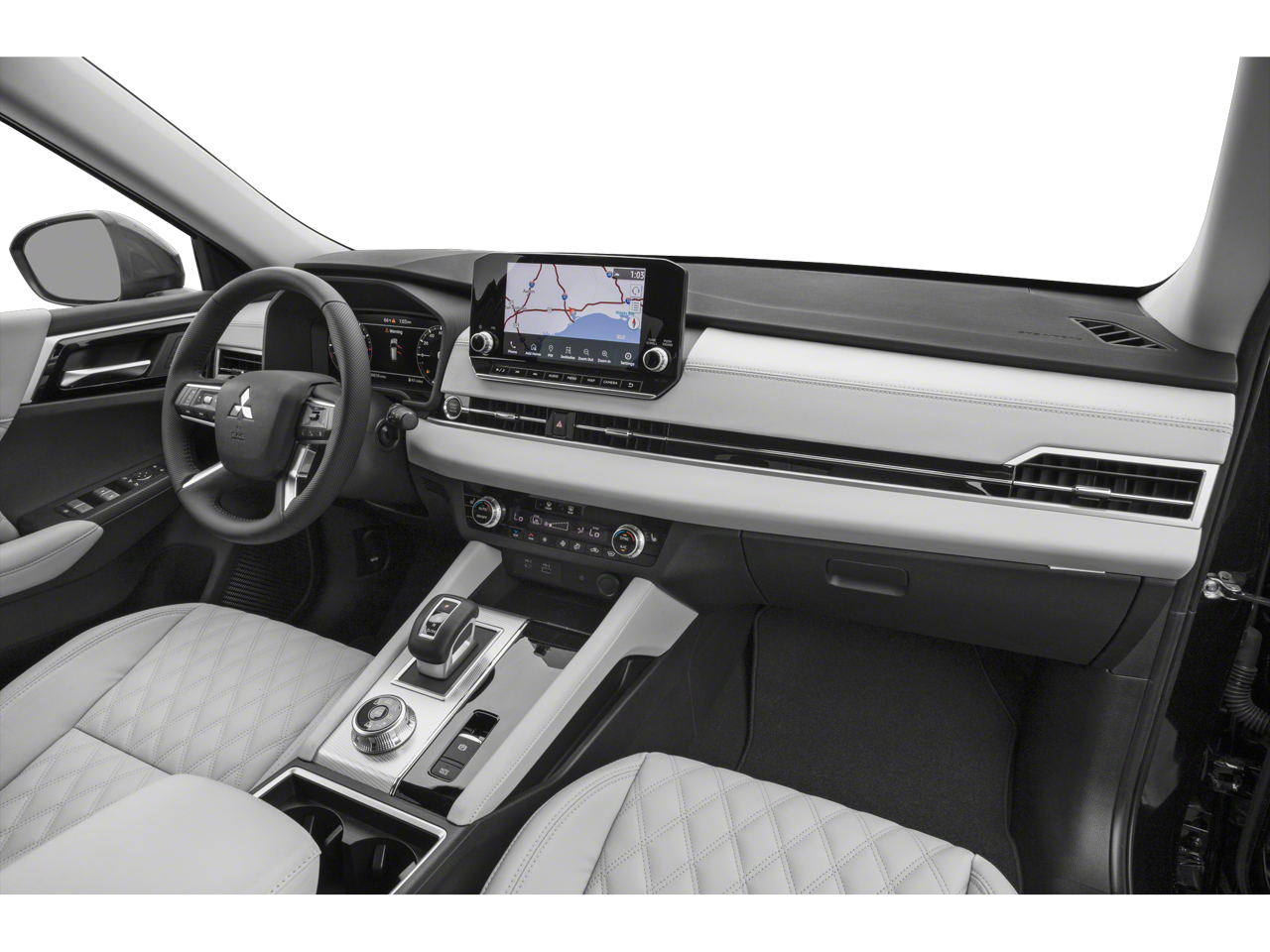 This 2024 Mitsubishi Outlander SEL 4WD is well equipped and includes these features and benefits: 4WD, 3rd row seats: split-bench, 4-Wheel Disc Brakes, 5.694 Axle Ratio, ABS brakes, Air Conditioning, Alloy wheels, AM/FM radio: SiriusXM, Android Auto & Apple CarPlay, Auto High-beam Headlights, Auto-dimming Rear-View mirror, Automatic temperature control, Brake assist, Bumpers: body-color, Driver door bin, Driver vanity mirror, Dual front impact airbags, Dual front side impact airbags, Electronic Stability Control, Emergency communication system: Mitsubishi Connect w/ 24-month trial, Exterior Parking Camera Rear, Four wheel independent suspension, Front anti-roll bar, Front Bucket Seats, Front Center Armrest w/Storage, Front dual zone A/C, Front fog lights, Front reading lights, Fully automatic headlights, Headlight cleaning, Heated door mirrors, Heated Front Bucket Seats, Heated front seats, Heated rear seats, Illuminated entry, Knee airbag, Leather Shift Knob, Leather steering wheel, Low tire pressure warning, Memory seat, Navigation System, Occupant sensing airbag, Outside temperature display, Overhead airbag, Overhead console, Panic alarm, Passenger door bin, Passenger vanity mirror, Power door mirrors, Power driver seat, Power Liftgate, Power passenger seat, Power steering, Power windows, Radio data system, Radio: AM/FM 9.0 Navigation w/Smartphone Link, Rain sensing wipers, Rear air conditioning, Rear anti-roll bar, Rear seat center armrest, Rear side impact airbag, Rear window defroster, Rear window wiper, Reclining 3rd row seat, Remote keyless entry, Security system, Speed control, Speed-Sensitive Wipers, Split folding rear seat, Spoiler, Steering wheel mounted audio controls, Tachometer, Telescoping steering wheel, Tilt steering wheel, Traction control, Trip computer, Turn signal indicator mirrors, and Variably intermittent wipers. 4WD.