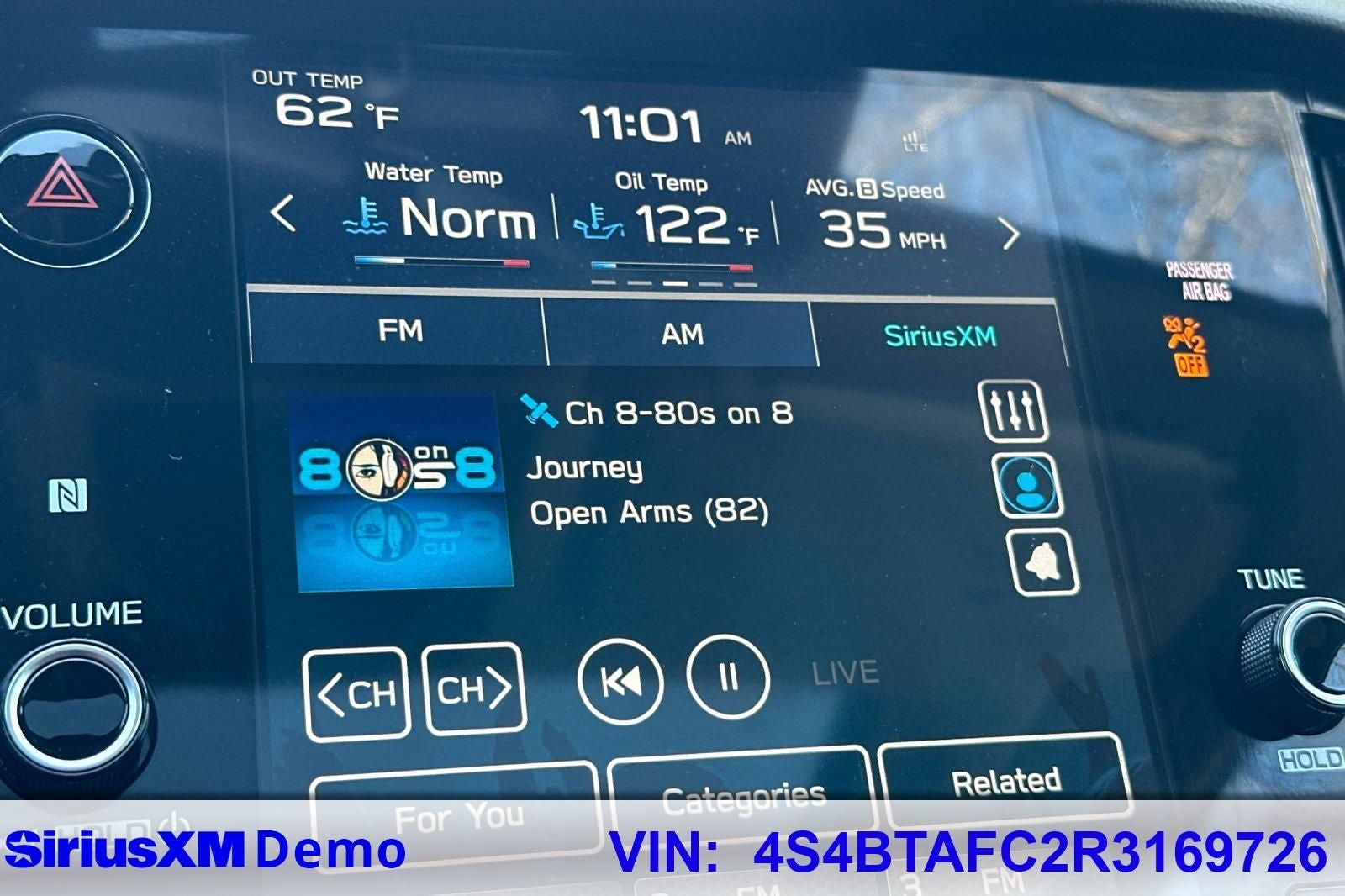 - Radio: Subaru STARLINK 11.6" Multimedia Plus Sys -inc: AM/FM stereo, HD Radio, valet mode, multi-touch gesture high resolution display screen, voice activated controls, Bluetooth audio streaming and hands-free phone connectivity w/SMS text messaging (refer to subaru.com for cell phone compatibility), Near Field Communication (NFC), iPod control capability, SiriusXM 360L Platinum trial (4 months free trial/subscription required after), SiriusXM Travel Link (4 months free trial/subscription required after), smartphone integration: Android Auto and Apple CarPlay w/full screen view and wireless connection and STARLINK cloud applications (refer to subaru.com for app availability), USB and Over The Air (OTA) audio system update, audio system and Bluetooth steering wheel control switches, 6 speakers, illuminated 3.5mm auxiliary input jack and illuminated USB-A and USB-C input/charge ports SiriusXM Platinum trial available after launch, possibly October 2023.